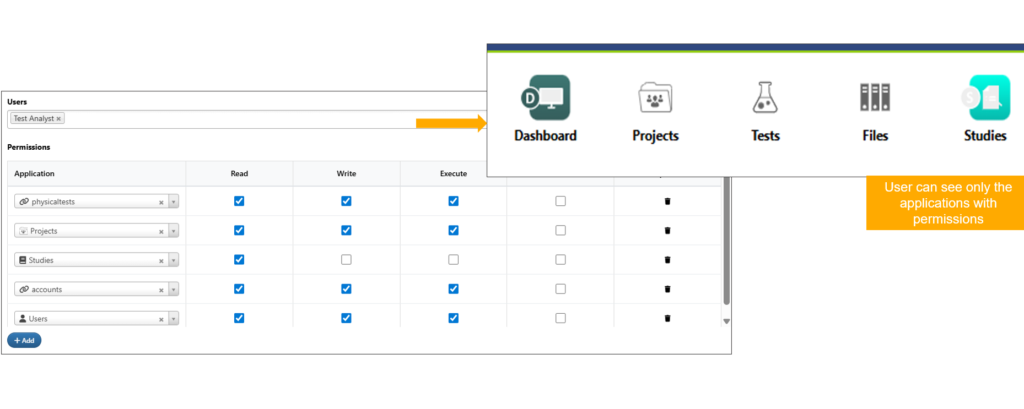 Users will only see the applications included in the roles assigned to them, along with the permissions that the admin has provided.
